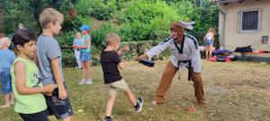Unser diesjähriges Sommerfest stand ganz unter dem Motto „5 Jahre Tokki“. Tokki (koreanisch für Hase) ist unser Abteilungsmaskottchen, der bei jeder Prüfung und bei jedem Lehrgang dabei ist, motiviert, Daumen drückt und manchmal auch Geschenke verteilt. Zu seinem Geburtstag durften er und Abteilungsleiter Hans 160 Gäste begrüßen. Ein Highlight war DJ Martin, der das Vorführungsteam musikalisch perfekt unterstützt hat und groß und klein den ganzen Nachmittag und Abend bestens unterhalten hat. 30 unserer Sportler*innen haben ein gemischtes Programm zur Unterhaltung vorbereitet. Unsere Minis starteten voller Elan mit einem Mix von Trainingsinhalten wie Koordinationsübungen, Kicks und Selbstverteidigung. Darauf folgten Technikabläufe, Leiterübungen, Formen, Wettkämpfe und Bruchtests aller Gürtelgrade. Sogar Tokki zeigte mit der Taeguk Chill-Chang sein Können. Als Sahnehäubchen spielte sogar das Wetter perfekt mit. Danke an ALLE Helfer*innen, die für das Gelingen unseres Sommerfestes beigetragen haben, auch an das Team des Schützenheimes und an alle Familien, die wunderbare Beiträge für unser Kuchen- und Abendbuffet mitgebracht haben.