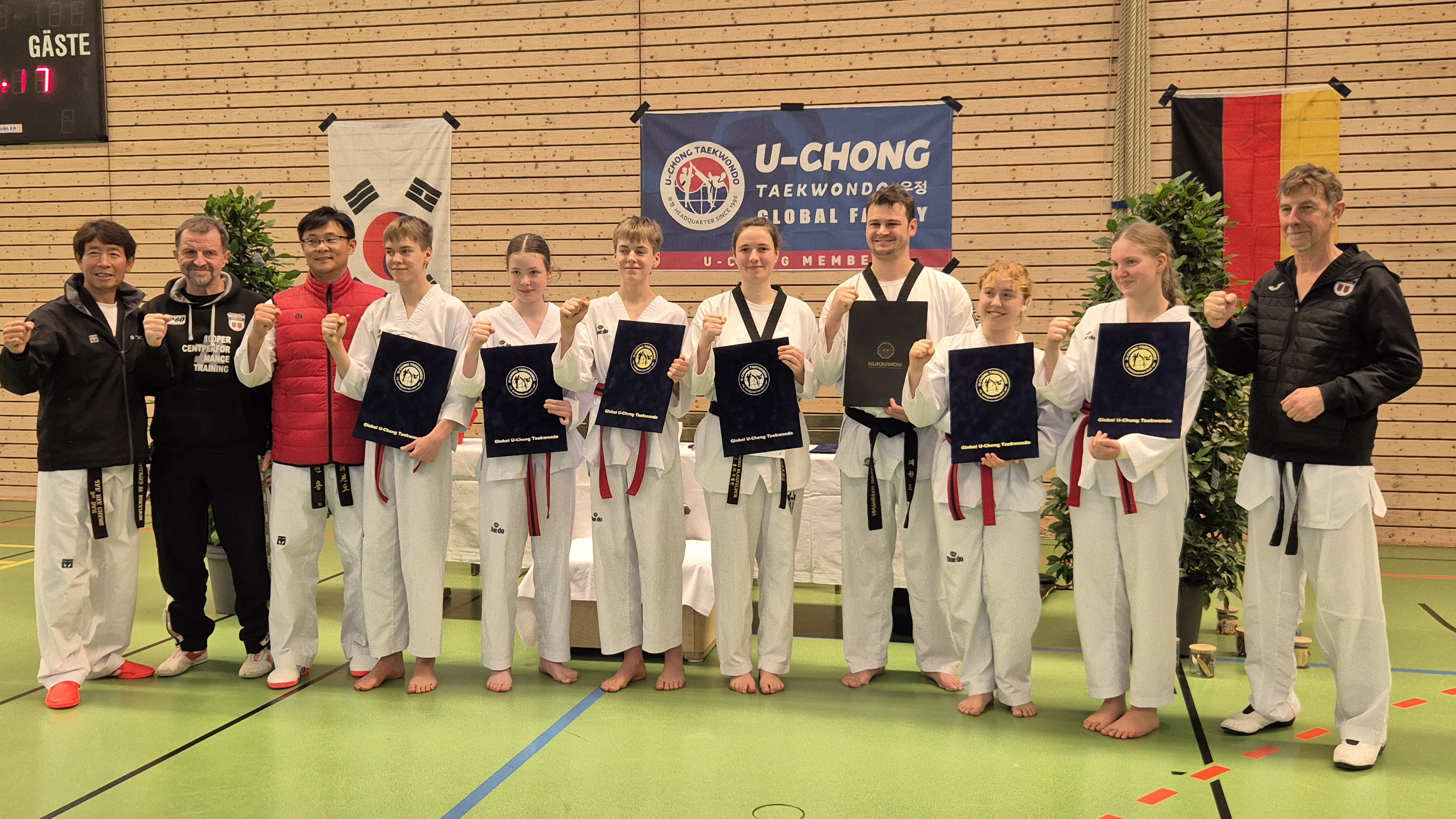 DTU-Prüfer Ralf Ramminger (4. DAN) zeigte sich mit den Leistungen der Prüflinge sehr zufrieden, diesmal vor allem mit den Kicks und dem Einschrittkampf. Hier trauten sich einige Prüflinge auch, schwierige Techniken zu zeigen. Bei den Formen hatten manche Prüflinge allerdings kleine Probleme. Prüfungs-Coaches waren Julia Heinz (1. Poom), Sabine Fischer (2. DAN) und David Malthan (1. DAN).